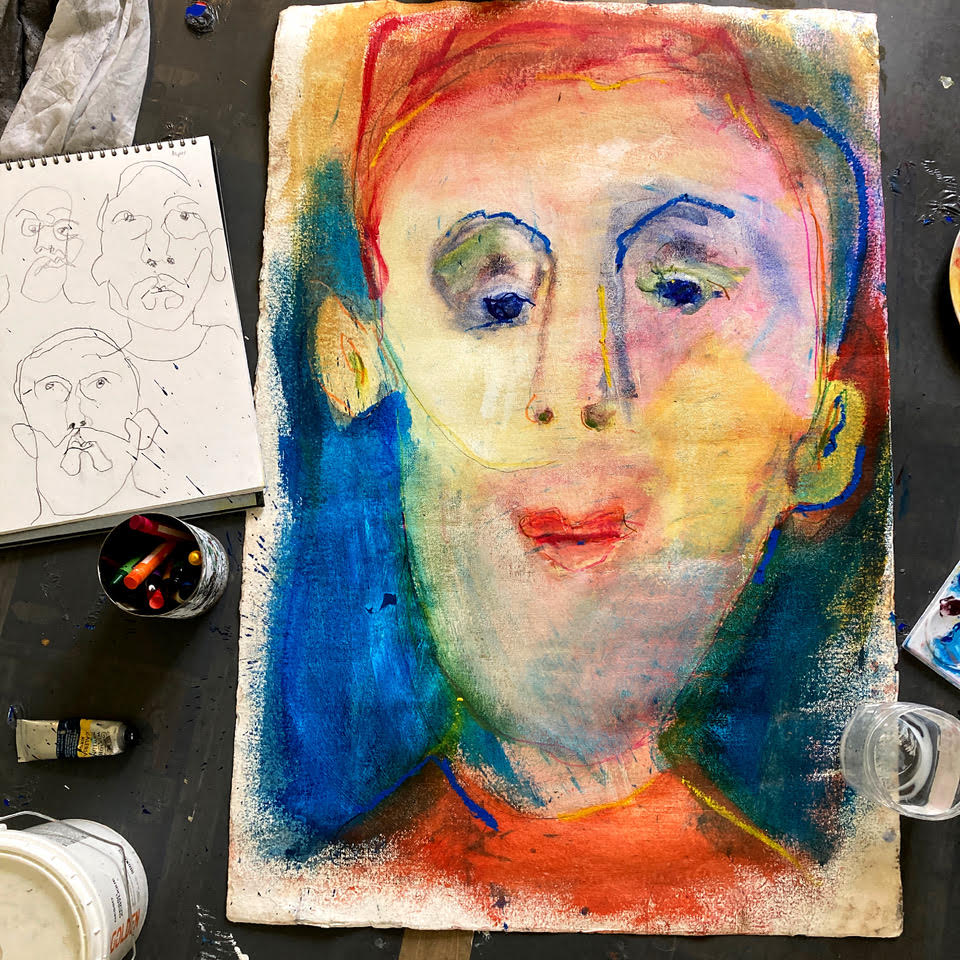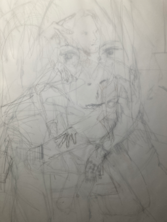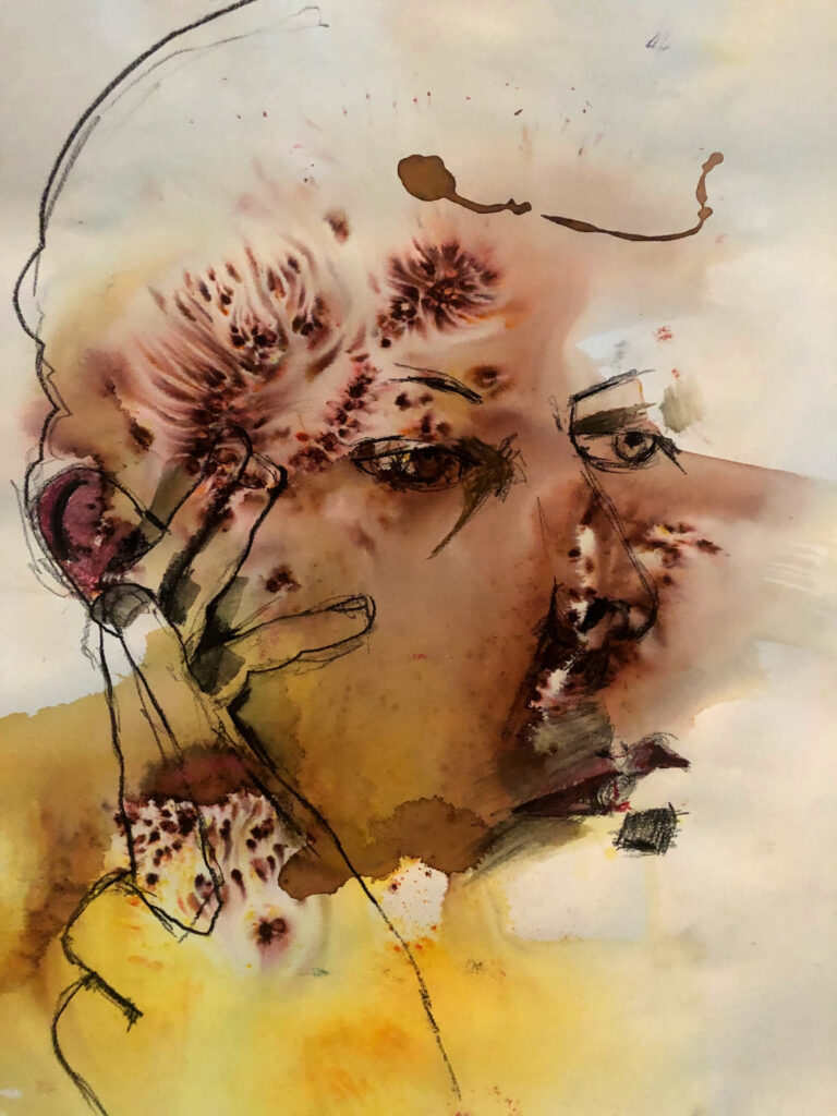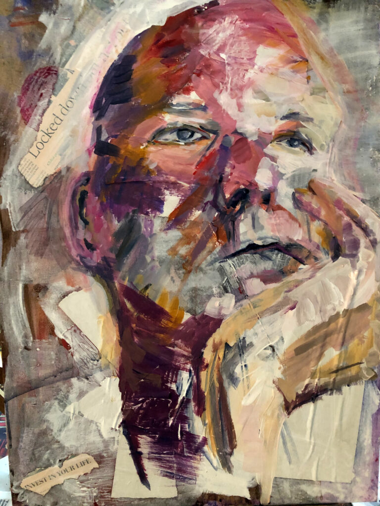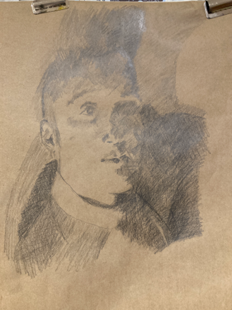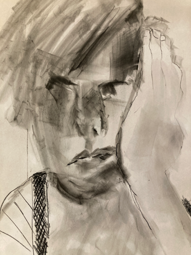 These are examples of some of my portrait drawings from the Portrait and Life Collective Sessions which I have attended every week since the beginning. Here I have tried to experiment with the weekly theme using different materials and surfaces including charcoal, acrylic paint, ink, oil sticks, mono printing, watercolour and pastel on paper, tracing paper, cardboard and canvas.